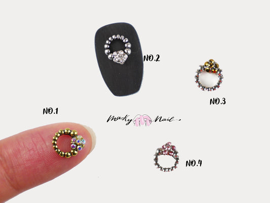 3 pcs vintage wreath design 3D Metallic Rhinestone nail studs / hollow out beads circle charm Nail design nail art