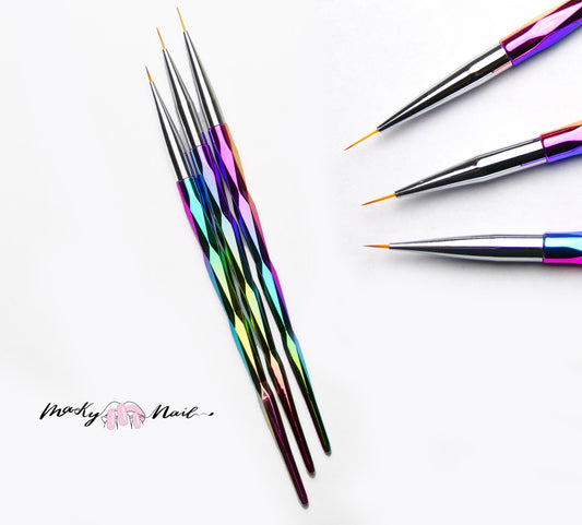 3 pcs Chameleon Electroplate Titanium Anodize Nail Brush Set for Detailing Striping Nail Art, liner, Painting Brushes set for nail art