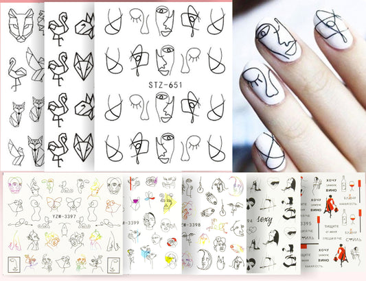 3 pcs Abstract Line Art Nail Tattoo