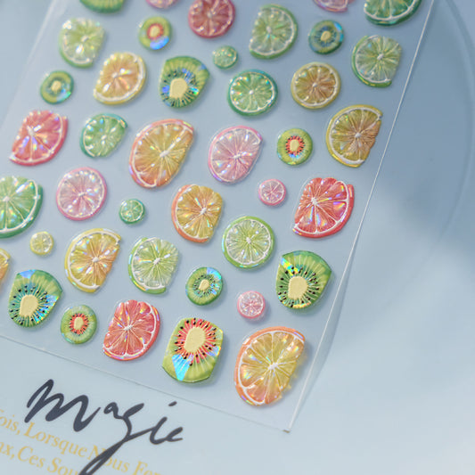 3D Juicy Embossed Iridescent Lemon Lime Orange KIwi Grape Fruit Nail Art Sticker