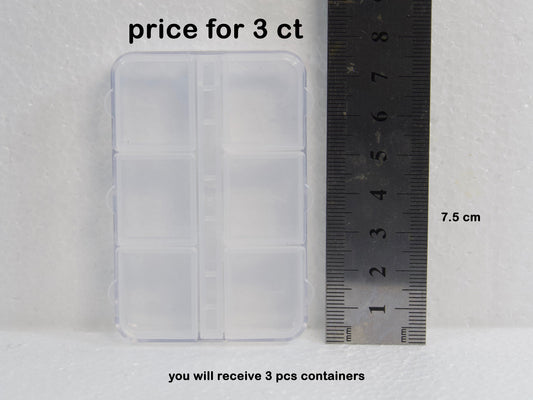 3ct Small items container/ 6 grid plastic container box for charms and trims