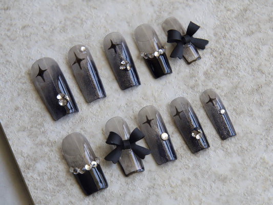 3D Matte Bowtie Nail Charm Metallic Medium size nail decals/ White Black Nail polish UV gel supply Instagram Pinterest Nail Inspiration