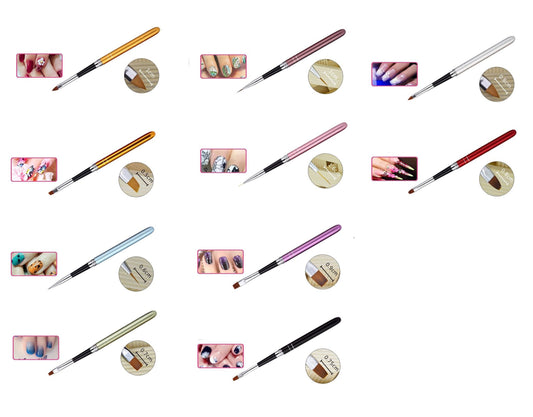 10 pcs Nail Brush Set for Detailing Striping Nail Art with Gel, Painting, 3D Brush, Acrylic brushes nail art supplies UV polish gel tools