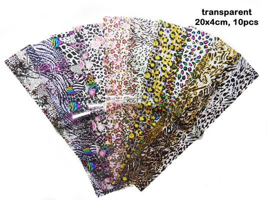 10 pcs Leopard Print Metallic transfer paper Foil Nail Art Sticker Decal/ Animal pattern DIY Golden nail transferring mirrored foil design