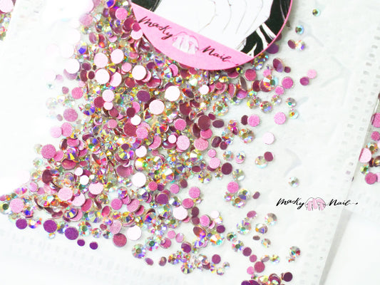 500pcs Multi-Size AB Rhinestones/ Pink Flat Back Crystal Gems 3d Nail Art Decal