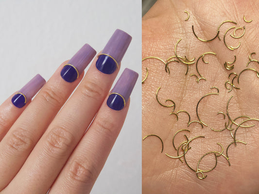 50 pcs gold arc smile nail studs/Multi sized Lunula gold arc shaped nail decoration