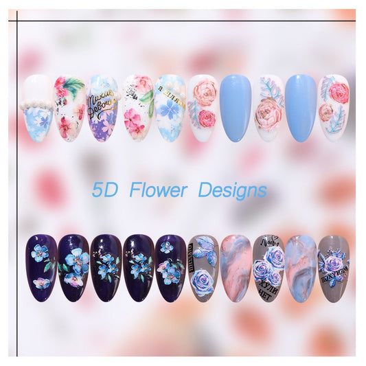 5D Flower Series Embossed nail sticker/Peel off 3D Floral Nail adhesive