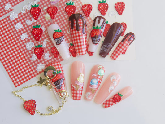 5D Strawberry Nail sticker/Ice-cream Red Grids 3D nail Cream Sweets Self Adhesive Decals