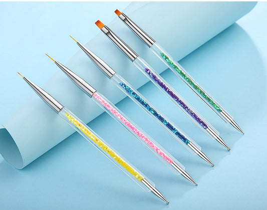 5pcs Double-headed Nail Brush dotting pen/ Dotted Painting UV Gel Polish Nails Brushes set with glitter handle Manicure