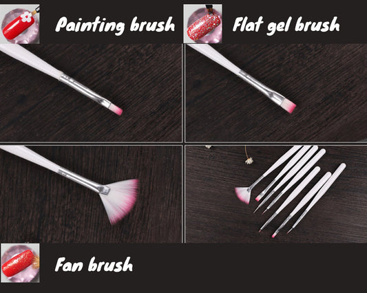 7 pcs Nail Brush set for Detailing Striping Nail Art with Gel Brushes, Painting Brushes, 3D Brush, Acrylic brush for nail art painting