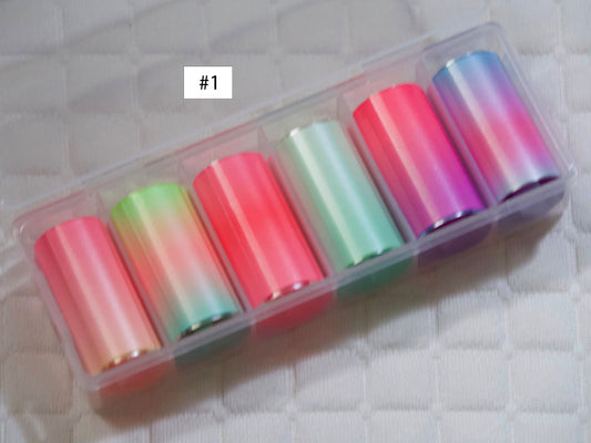 6pcs Iridescent Gradient Colorful Transfer Foils for Nail Art