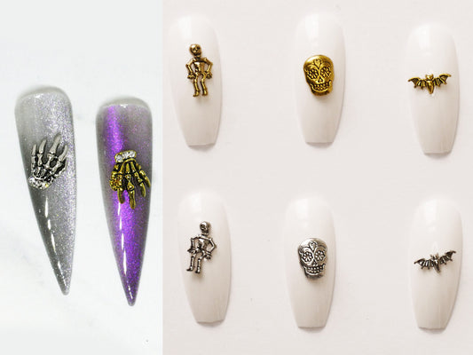 9 pcs 3D Antique Vintage Punk Teddy bear nail decoration/ Bronze Metallic Heart Shaped Decal Nail DIY deco