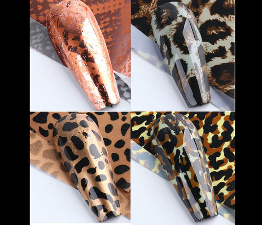 8pcs Animal Print Metallic Transfer Film Foil Nail Art Sticker Decal/ Leopard Snake Cracked DIY nail transferring Accent nails