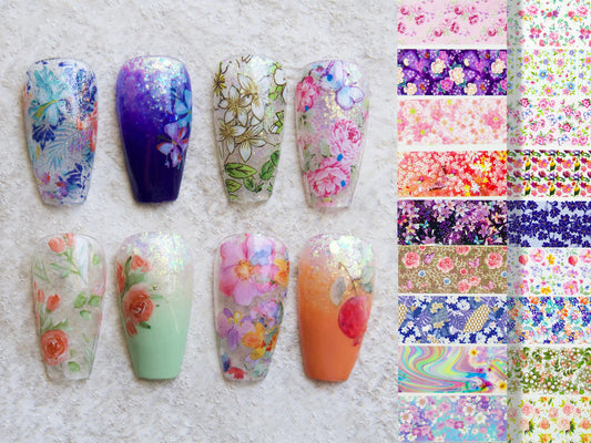 9pcs Flower garden Transfer Film Foil Nail Art Sticker Decal
