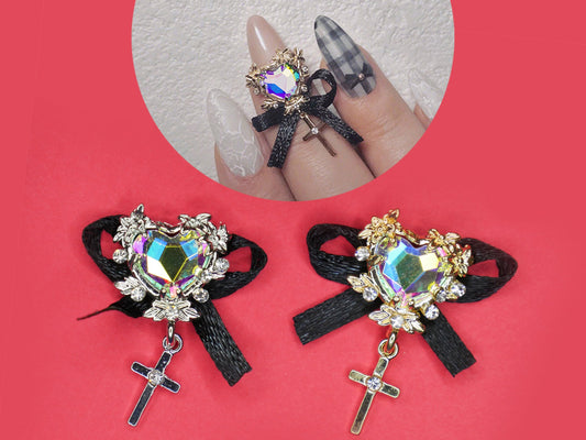 Bowtie Heart Crystal Nail charm/ AB Stone Gold Silver Rococo Victorian Royal nail jewelry