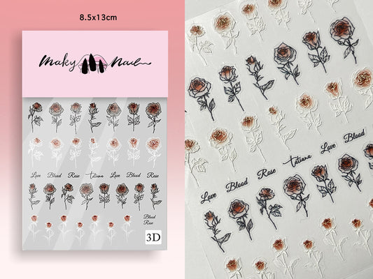 Bloody Rose Sticker Nail Art/ Black Wings Blood Butterfly 3D Decorative Peel Off Decals for Nails