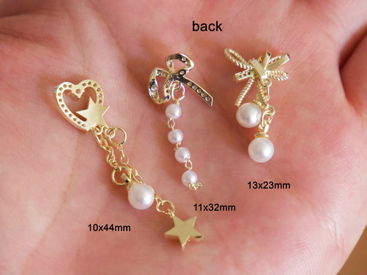 Bow tie Nail Jewelry Gold Chain with Pearls 3D Zircon nails ornament Decal