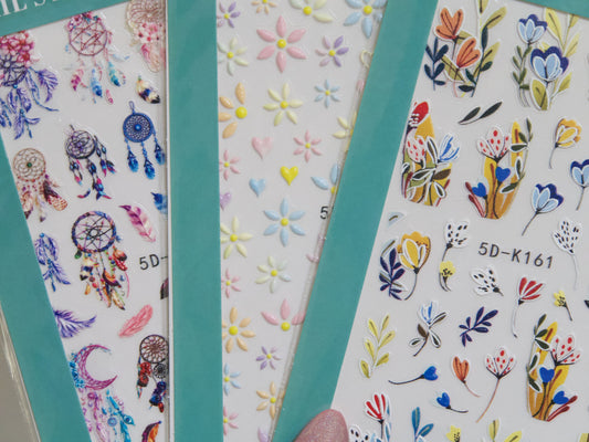 Dream Catcher & Flower 5D Carved Embossing Nail Art Stickers Decals