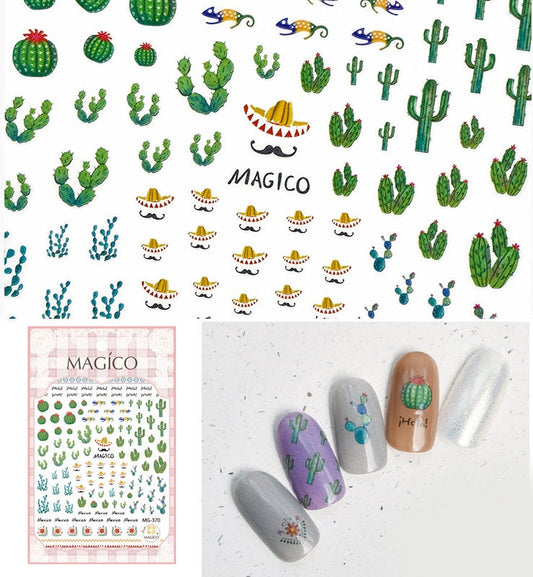 Desert Cactus Nail Art Sticker/ Tropical succulents Mexico Summer DIY Tips Guides Transfer Stickers