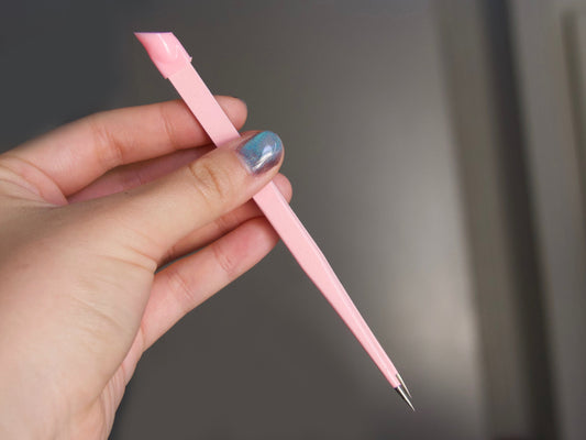Double Sided Pink Tweezer with Silicon Head Press on Stickers, Glitters, Studs, Rhinestones/ Embossed Stick Pressing Straight Head Tweezers