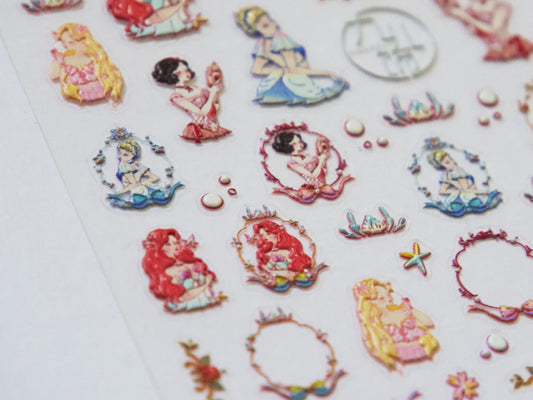 Disney Princess Nail Sticker Ariel Cinderella Snow White Sleeping Beauty Aurora Belle Cartoon Nail Stickers