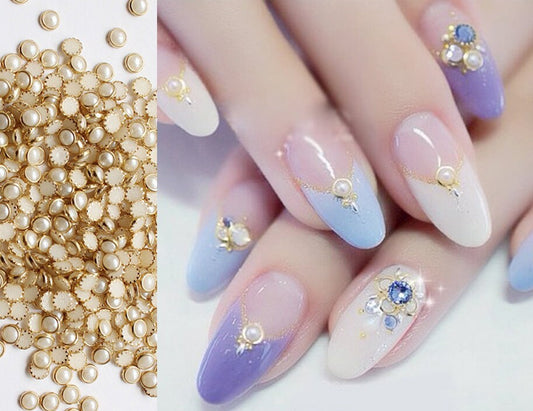 Gilt-edged Semicircle pearls/ Bezel Rosary gold pearl nail deco