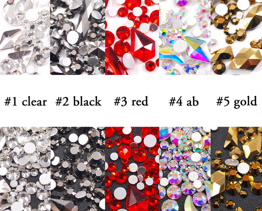 Glass Rhinestones For Nails Art Decorations / Mixed flat back shape Multi sized crystals Nail supply