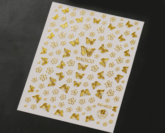 Gold Butterfly Flower nail sticker/ Fairy Tale Nail Art Stickers Self Adhesive Decals
