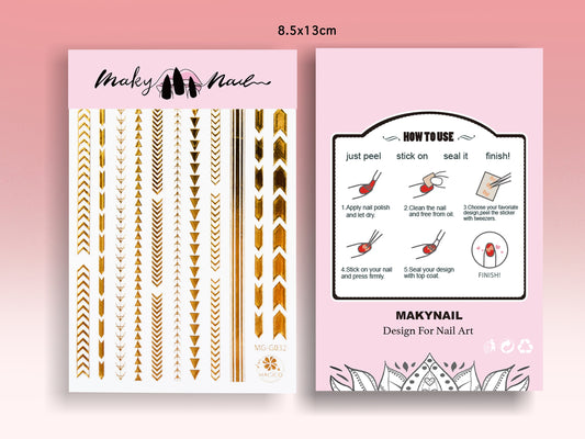 Gold Boho Stripe Arrow Theme nail sticker/ 1 Sheet 3D Nail Art Stickers Self Adhesive Decals
