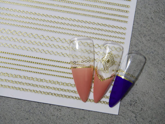Gold chain nail sticker/ Nail Art Stickers Self Adhesive Decals