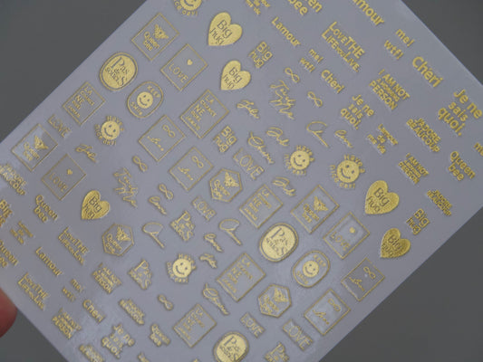 Heart Chain Bow Tie Gilding Metallic Finish Nail Sticker/Kawaii y2k Sweet love Nail Stickers Self Adhesive Decals