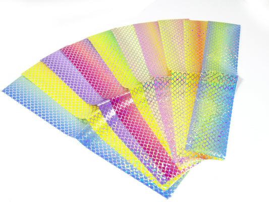 10pcs Mermaid Scales Pattern Transfer Film Foil Nail Art Sticker Decal/ Rainbow Ombre Mermaid tail DIY nail with silver holo accent