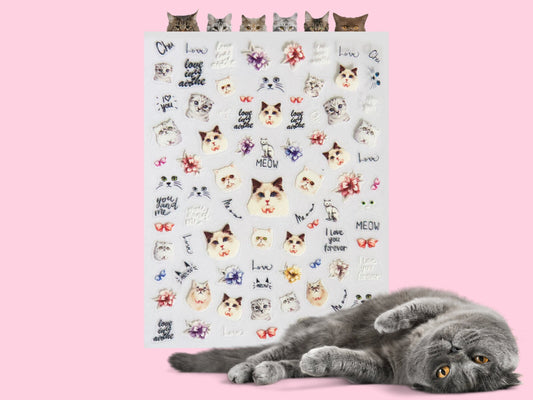 Kitty Cat Nail Art Stickers/Tabby Cat Ragdoll Persian Cats Nail Art Stickers Self Adhesive Decals