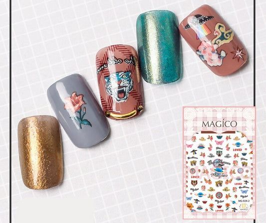 Magic world Wild Tiger Animal fairy tail Nail Art Sticker/ Butterfly DIY Tips peel off Stickers