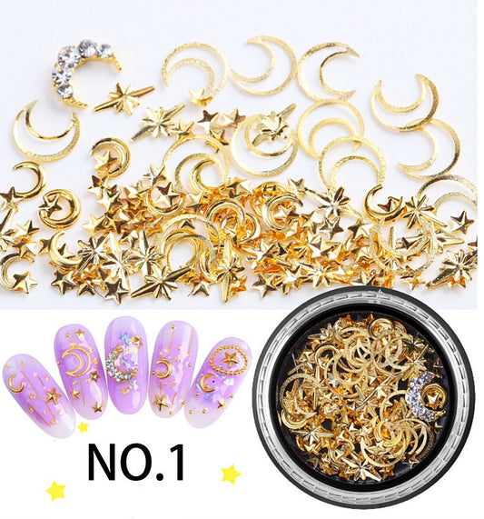 Moon and star Rivet Glitter Nail Studs Metal Decoration/ starry sky design Nail supply Metallic studs