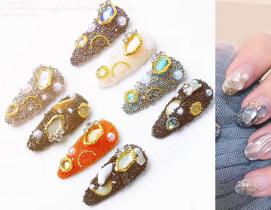 Mixed Rhinestones caviar Beads nail art decal/ 3D Gemstones nail Decals