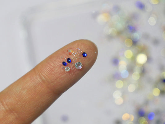 Mixed caviar nail art decal/ Royal Blue Rhinestones studs 3D Gemstones nail Decal
