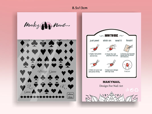 Poker Cards Nail sticker/ Club, Diamond, Heart, Spade Red Black Nail art stickers