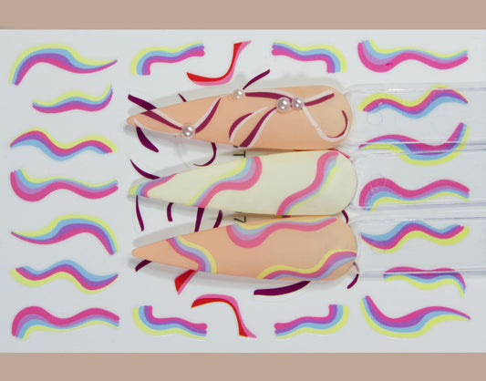 Pink Ribbon Lace Nail Sticker/Swirl Rainbow Self Adhesive Decals Graceful Fringed Ribbons Peel off nail decals Supplies