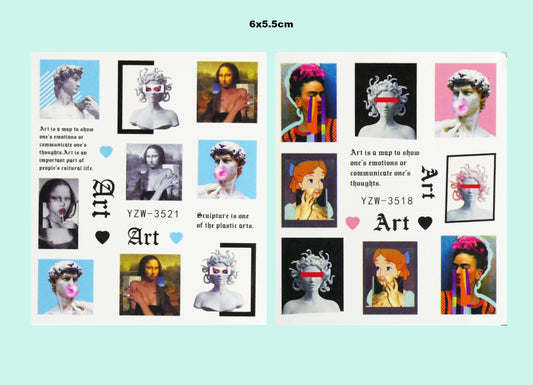 Pop art Mona Lisa Medusa Water Transfer Decals Nail Art Stickers