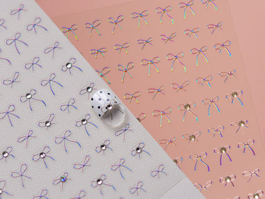 Pink Iridescent Halo Crystals Bow Knot Nail Stickers