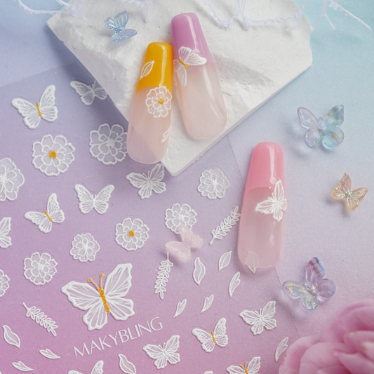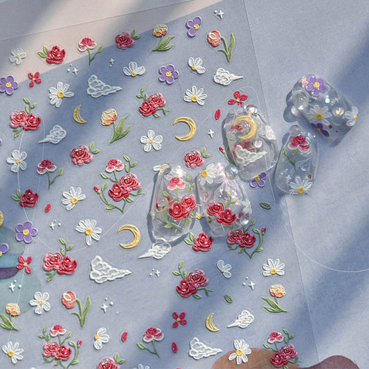 Rose Cloud Floral 3D Embossing Nail art Sticker Flower Fairy Bouquet Stickers