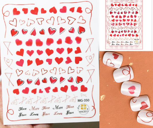 Red Heart Nail Sticker/ Sweet love Nail Art Stickers Self Adhesive Decals/Red Ribbon nail art sticker/ Valentine's Day nail decal