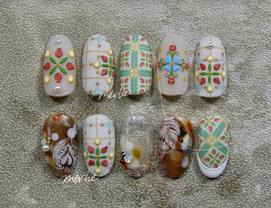 Pottery Floral Ceramics Print nail sticker/ Vintage Tile pattern 3D Nail Art Stickers Self Adhesive Decals