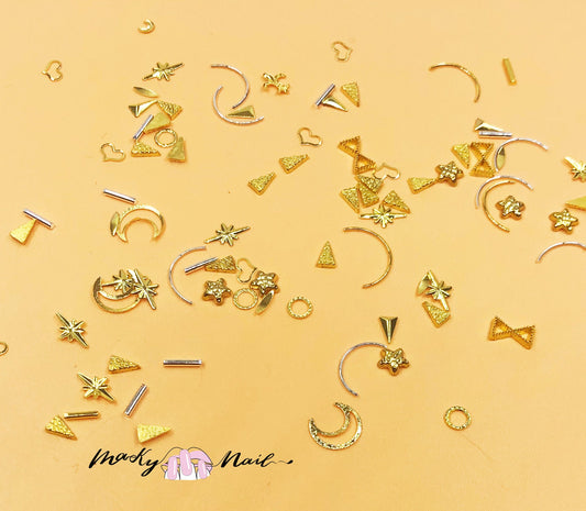 Star Shell Feather Rivet Nail Studs /Summer Ocean Sun Moon Starfish Silver Gold Metallic Decals