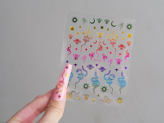 Snake Nail Stickers/ Metallic Rainbow Gilding Totem Moon Star 3D Nail Art Stickers Self Adhesive Decals