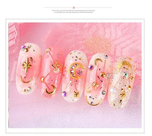 12 grids Moon and star Rivet Glitter Nail Studs Metal Decoration/ starry sky design Nail supply Metallic studs