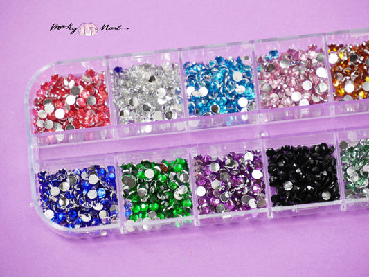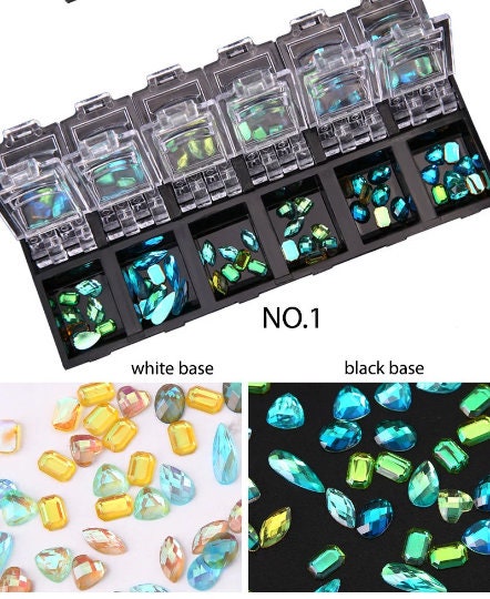 12 grids Rhinestones For Nails Art Decorations / multi colored flat crystal nail art decal