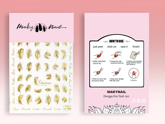 Ultra Thin Gold Silver Feather nail sticker/ 3D Nail Art Stickers Self Adhesive Decals