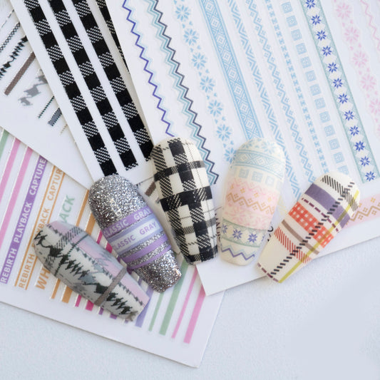 Tweed Plaid Pattern Nail Art Sticker/ Stripe Checkered Peel Off Tips Stickers